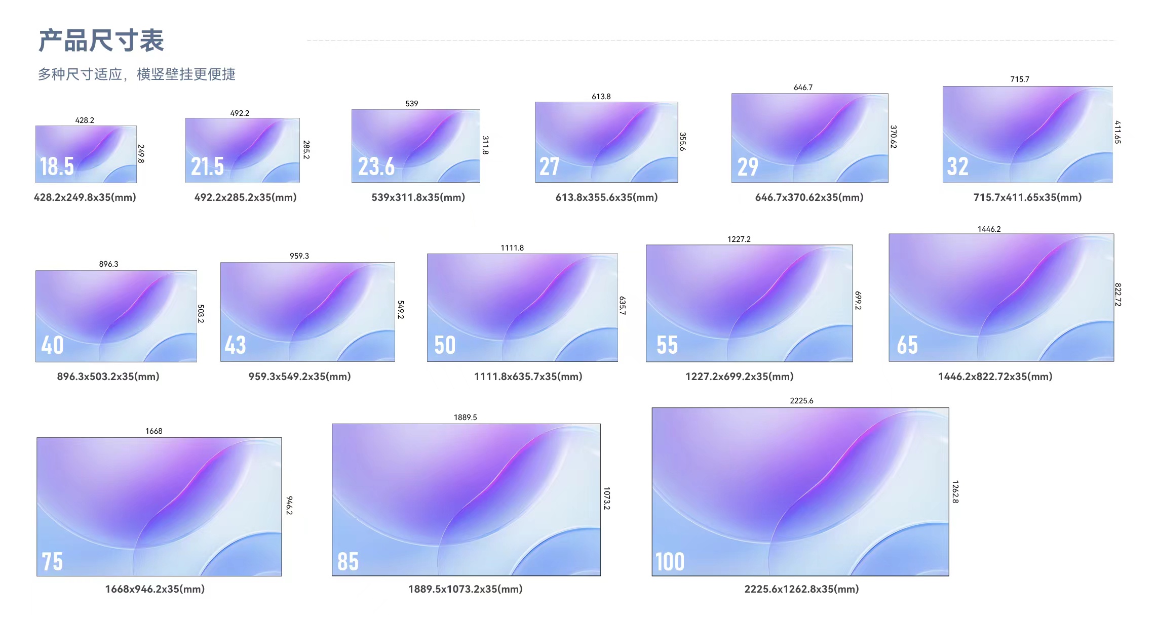 | اندازه صفحه نمایش LCD | 21.5/32 "/43"/50 "/55"/65 "اختیاری |